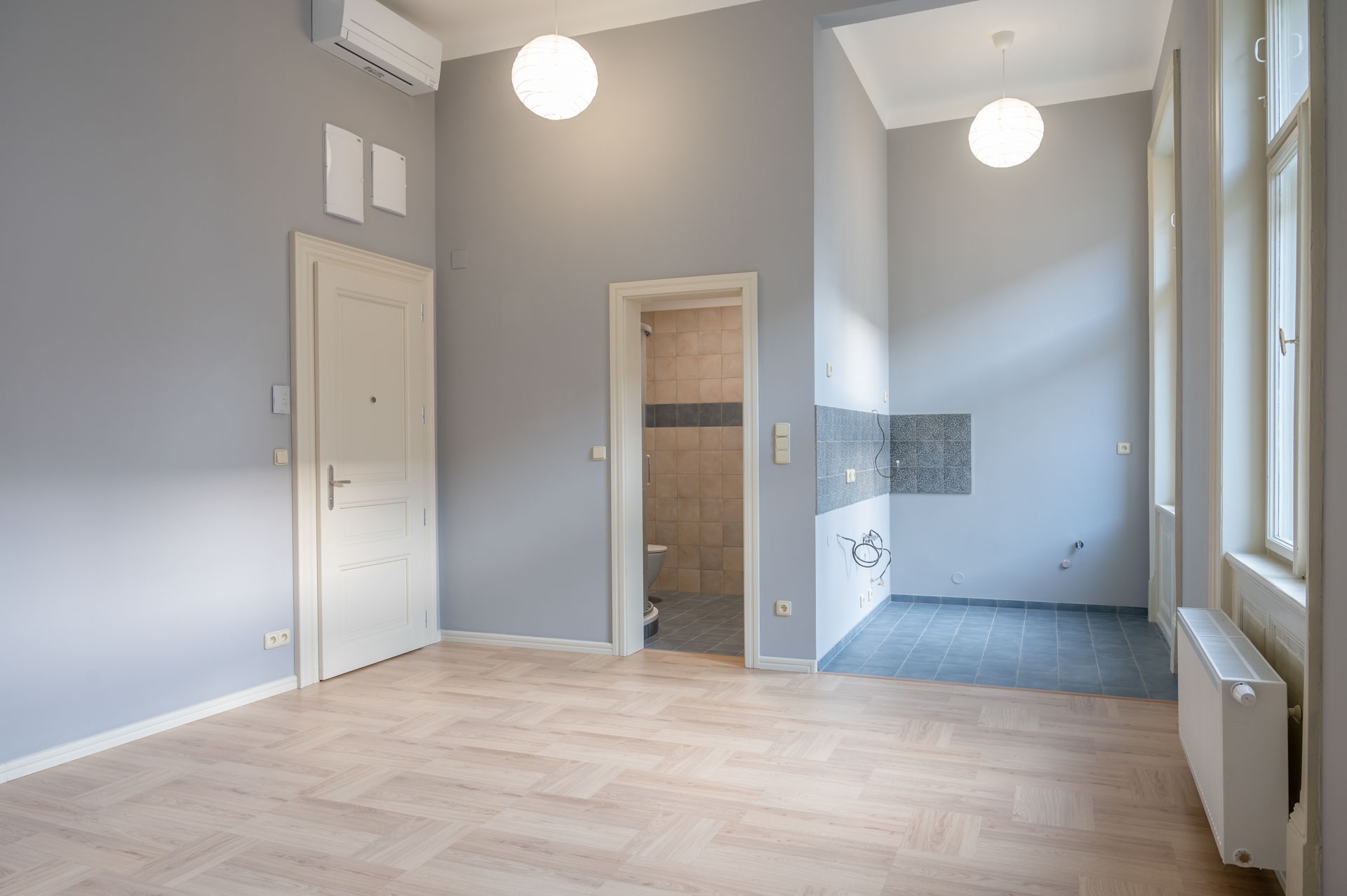 Bytový prostor o dispozici 1+kk a výměře 31,3 m2 se nachází ve 4. nadzemním patře.